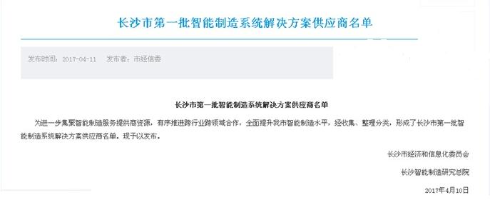 晗光智能被選為長沙市第一批智能制造系統解決方案供應商(附:長沙市第一批智能制造系統解決方案供應商名單發布)